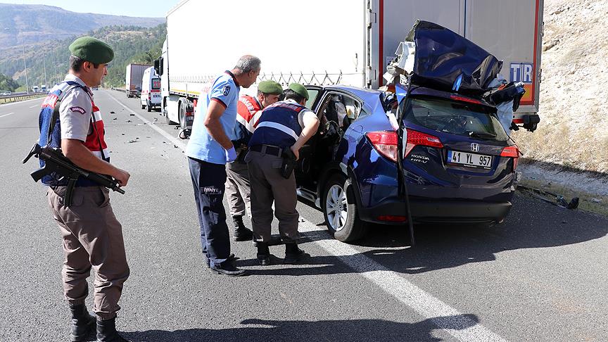 Alınan bilgiye göre, Anadolu Otoyolu'ndan Ankara istikametine seyreden Oktay Aslantaş (48) idaresindeki 41 YL 957 plakalı otomobil, Çamlıdere ilçesi Cankurtaran Rampası Su Deposu mevkisinde emniyet şeridinde park halinde bulunan Ahmet Ecer idaresindeki 01 ZF 404 tıra arkadan çarptı.