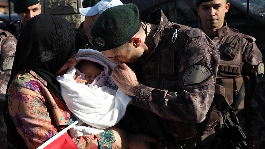 Törene, Rize Belediye Başkanı Reşat Kasap, İl Emniyet Müdürü Altuğ Verdi, İl Jandarma Komutanı Albay Hakan Dedebağı, Afrin'e gidecek polislerin yakınları katıldı.