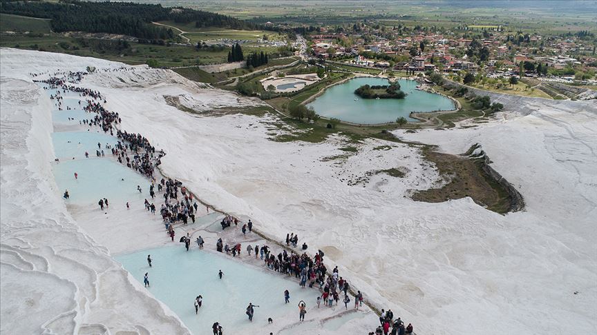 UNESCO Dünya Mirası Listesi'nde yer alan Pamukkale, her mevsim yerli ve yabancı turistlerin akınına uğruyor. Termal sularıyla şifa dağıtan Pamukkale'nin beyaz travertenleri ve Hierapolis Antik Kenti'ndeki tarihi yapılar, bölgeye dünyanın her yerinden ziyaretçi çekiyor.