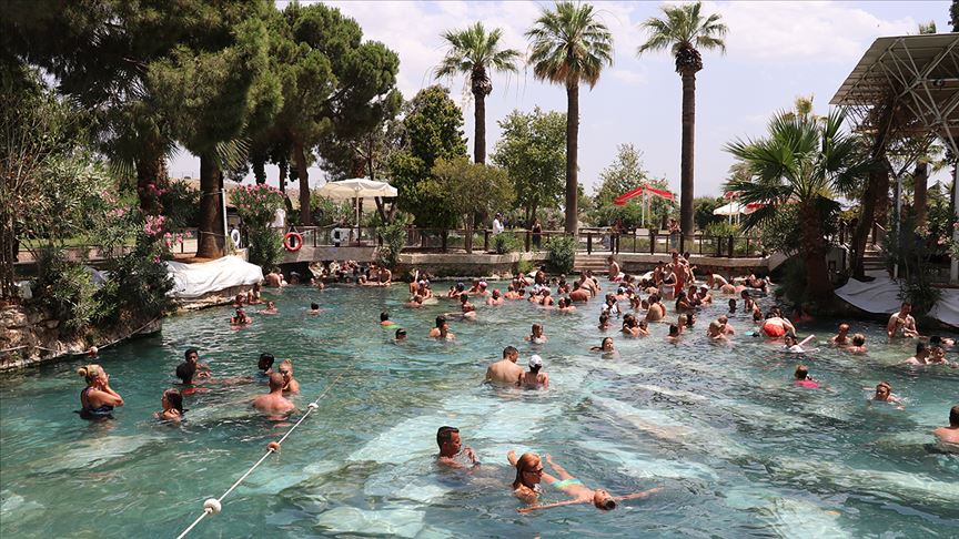 Pamukkale'nin bu yılın ilk 6 ayında 1 milyon ziyaretçiyi ağırladığını bildiren Şen, "Özellikle hafta sonları yaşanan ziyaretçi yoğunluğunda antik havuz da dolup taşıyor. Sıcak havada serin suların tercih edildiği bu mevsimde insanlar, yaz kış 36 derece olan termal suya girip tarihi yapılar içinde yüzme fırsatı buluyor. Her dönemde şifa arayan insanların ilgisini çeken Pamukkale'de çeşitli rahatsızlıklara iyi geldiğine inanılan termal su binlerce yıldır şifa dağıtıyor.
