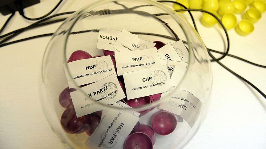 Siyasi partilerin, 1 Kasım'da yapılacak milletvekili genel seçiminde kullanılacak birleşik oy pusulasındaki yerleri kurayla belirlendi. Buna göre, pusulada AK Parti 20, CHP 4, MHP 13, HDP 17'nci sırada yer alacak.