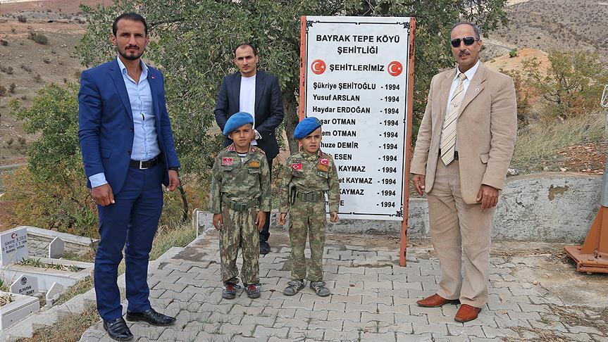 Katliamda annesini kaybeden Kenan Şehitoğlu, Siirt Bayraktepe Anadolu Köy Korucuları ve Şehit Aileleri Derneği Başkanı İsmail Şehitoğlu asker kıyafeti giydirdiği çocuklarıyla Bayraktepe Şehitliği'ni ziyaret ederek, katliamda hayatını kaybedenler için dua okudu.