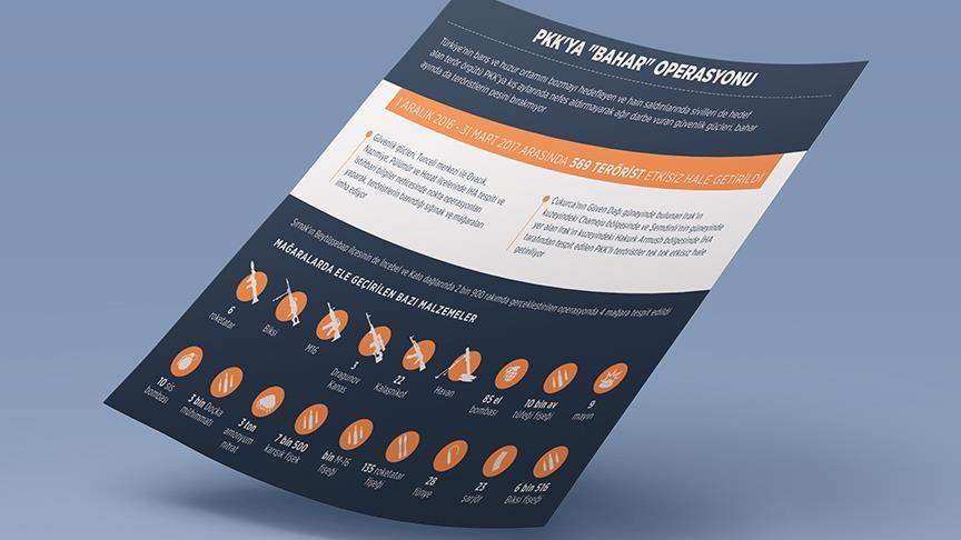 Kış boyunca örgüte büyük darbe vuran güvenlik güçleri tarafından ilkbahar mevsiminin ilk ayı martta ise yurt içi ve dışında yürütülen operasyonlarda etkisiz hale getirilen terörist sayısı 173 oldu.