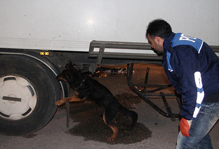 Muz yüklü tırdaki aramaya ''Para'' adlı narkotik dedektör köpeği de katıldı.