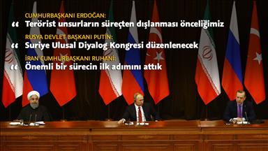 "Türkiye-Rusya Federasyonu-İran Üçlü Zirvesi", Cumhurbaşkanı Erdoğan'ın ev sahipliğinde İran Cumhurbaşkanı Hasan Ruhani ve Rusya Devlet Başkanı Putin'in katılımıyla Ankara'da düzenleniyor.