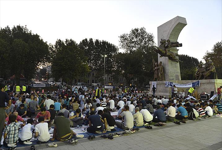 Mısır, Suriye ve Filistin gibi Müslüman coğrafyasında kardeşlik, adalet ve özgürlük için Sarahçhane Parkı'nda toplanan Genç Hareket üyeleri, iftar yaptıktan sonra akşam ve yatsı namazlarını kıldı.