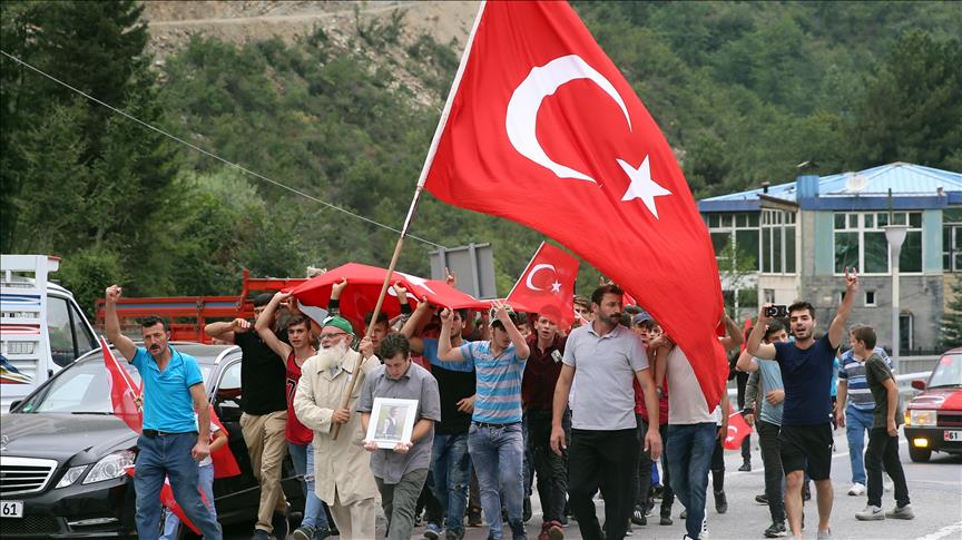Trabzon'da, Maçka ilçesi kırsalında bölücü terör örgütü mensuplarıyla sağlanan sıcak temas sırasında şehit olan Eren Bülbül için yürüyüş düzenlendi.