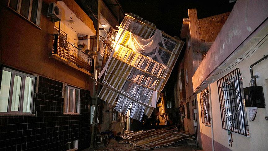 Etkisini arttıran lodos nedeniyle kent merkezindeki bazı evlerin çatıları araçların üzerine uçtu. Zaman zaman ağaçlardan kopan dallar yüzünden trafik aksadı, yayalar ayakta durmakta zorlandı.