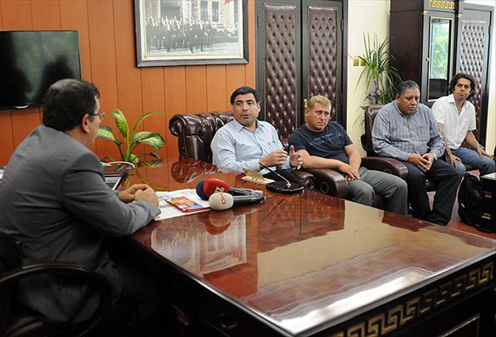 Soma'daki maden faciasından kurtarılan işçilerden Orhan Turan ve kurtarma ekibinde görev yapan Erdal Turan ile bulaşan Şilili madenciler, dernek yöneticilerinin eşliğinde Soma Kaymakamı Bahattin Atçı'yı ziyaret etti.