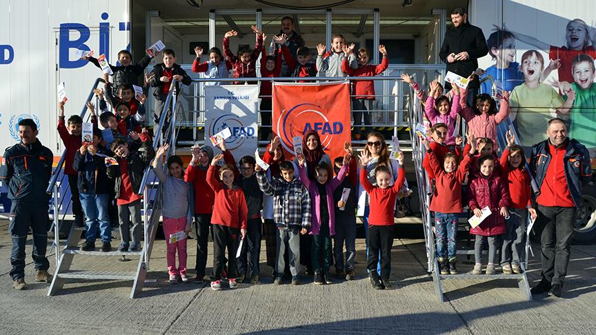 Samsun Afet ve Acil Durum Müdürlüğü (AFAD), simülasyon tırında "Afete Hazır Türkiye" ve "İlk 72 saat" konularında 40 bin öğrenciye temel afet bilinci eğitimi verdi.