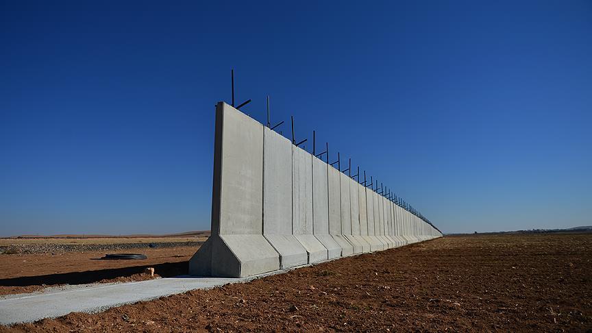 Rakka kentine bağlı Tel Abyad ilçesinin karşısında bulunan Akçakale'nin Hürriyet Mahallesi'ndeki sınır hattında geçen ay iş makineleriyle başlatılan zemin hazırlama çalışmalarının tamamlanmasının ardından beton blokların örülmesine başlandı.