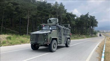 Askerleri taşıyan minibüslere zırhlı araçlar ile frekans karıştırıcı araçlar da eşlik etti.