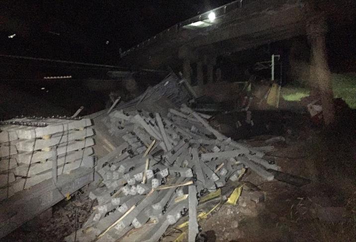 Kaza sonrası hasar gören köprü, araç trafiğine kapatıldı.