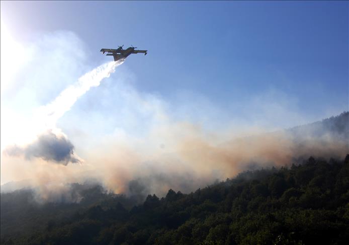 Bu arada, bir keşif uçağı da yangının boyutunu tespit etmek amacıyla bölgede uçuş yapıyor.