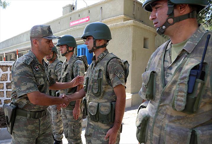 Şanlıurfa'nın Suruç ilçesindeki 3. Hudut Tabur Komutanı Yarbay Alper Örün de sınırda görev yapan askerlerle bayramlaştı.