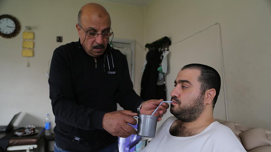 Türkiye'ye ağır yaralı olarak geldiğini anlatan Ahmad, "Evden işe gidiyordum. Ne olduğunu anlamadan belimde sıcaklık hissettim ve sonrasını hatırlamıyorum. Ailem beni ilk etapta Humus'ta birkaç sağlık merkezine götürmüş ancak oradaki imkanlarla tedavim çok sürmedi. Türkiye'ye geldik ve burada biraz daha iyiyim. Mermi omuriliğime isabet etmişti. Çok şükür hale hayattayım" diye konuştu.