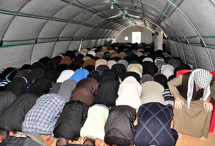 Ülkelerindeki iç savaş nedeniyle Türkiye'ye gelen ve Akçakale'deki Süleyman Şah Konaklama Tesisi'ne yerleştirilen Suriyeliler, bayram namazını bugün kıldı.