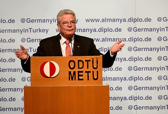 Gauck, resmi temaslarda bulunmak üzere geldiği Ankara'da Orta Doğu Teknik Üniversitesinde bir konuşma yaptı.