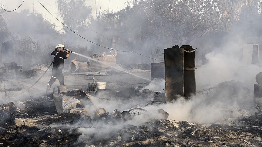 Kısa sürede büyüyen alevler, branda ve çalılardan yapılmış diğer çadırlara da sıçradı.