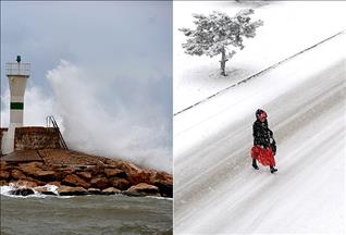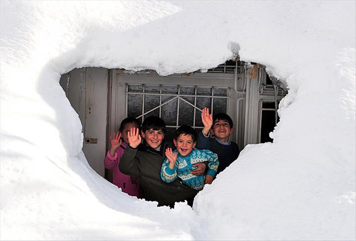 Birçok evin kar altında kaldığı kentte, vatandaşların ve özellikle çocukların evlerine girebilmek için gösterdiği çaba, ilginç görüntüler oluşturuyor.