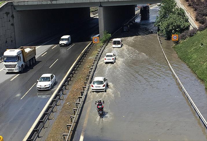Metris'teki metro istasyonu çalışması sırasında su borusunun patlaması sonucu, TEM Otoyolu Metris bağlantısında trafik yoğunluğu yaşanıyor.