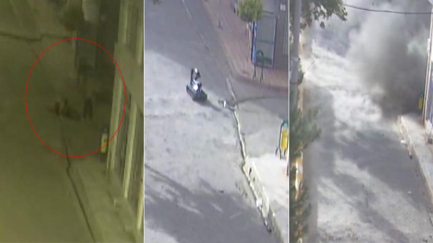 AA'nın ulaştığı MOBESE kamerasına yansıyan görüntülerde, 5 gün önce Midyat Caddesi'nde gece karanlığından faydalanan bir grup teröristin yoldaki taşları sökerek toprak zemini kazıp beyaz bir çuval içerisindeki yaklaşık 100 kilogram patlayıcıyı yerleştirdiği yer alıyor.