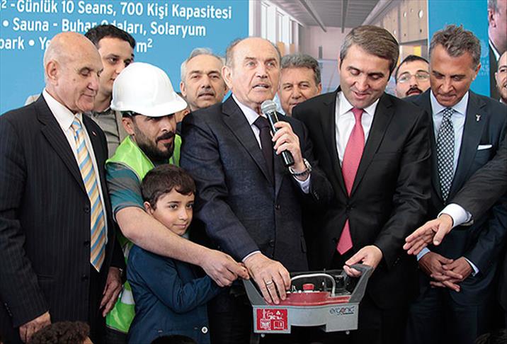 Konuşmaların ardından Topbaş, sporcu çocuklarla spor kompleksinin temelini attı.