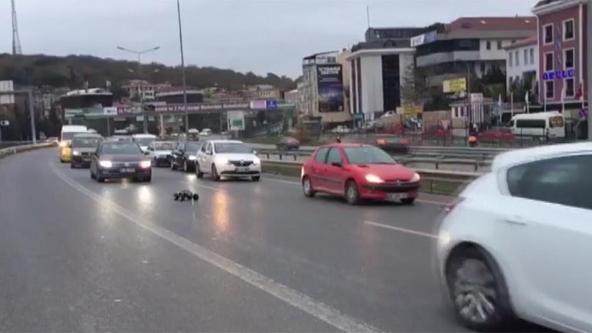 Şile otoyolunda Ümraniye yönüne seyir halinde olan bir araçta bulunan kişilerin yola bıraktıkları uzaktan kumandalı oyuncak arabayla sürücüleri tehlikeye atması görüntülere yansıdı.