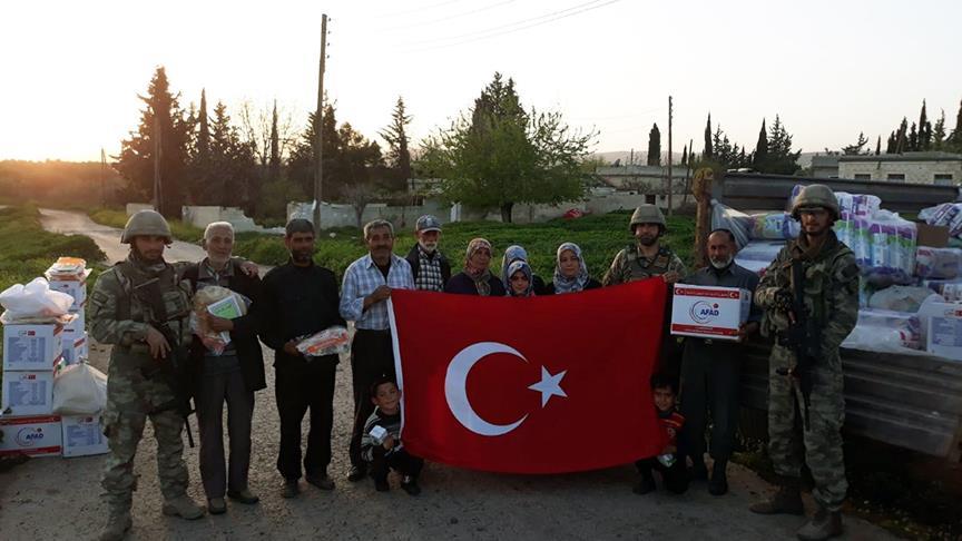 Bu kapsamda, AFAD yardım malzemelerinin olduğu kutular, askerler tarafından Afrin'in Zındıkhan ve Eşkansarki köylerine getirildi. Bu köylerde barınan 140 kişiye TSK tarafından gıda ve hijyen malzemesi yardımı yapıldı.