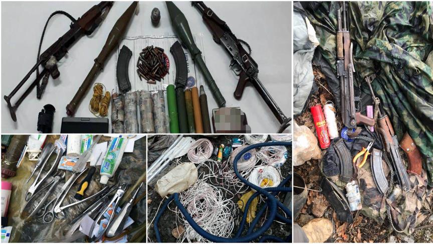 Aramalarda, ayrıca 3 bin metre kablo, 400 metre antikron kamera kablosu, silah dürbün şarj aleti, 3 tonluk su tankı, sırt çantası, şemsiye, güneş paneli, çadır, 42 çift ayakkabı, terörist kıyafeti, pusula, 1 top kumaş, 7 bidon, bir su botu, 2 bot küreği, 200 metre su hortumu, 100 metre kablo koruma hortumu, DVD oynatıcı, yazıcı, 9 uyku tulumu, askeri kamuflaj, 20 kilogram çay, 10 kilogram şeker, 130 kilogram makarna, 24 kutu çikolata, tıbbi malzeme, kırtasiye malzemesi ve çeşitli yaşam malzemesi bulundu.
