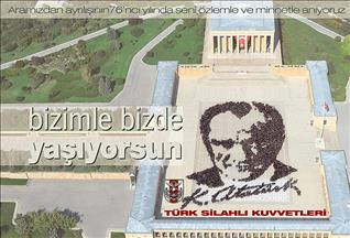 "Bu büyük başarıda kuşkusuz Gazi Mustafa Kemal’in hayalleriyle birlikte milletimizin sabrının, gayretinin, alın terinin, kardeşlik azminin ve ülkesine olan bağlılığının büyük payı bulunuyor. Bugün millet ile devlet arasındaki bağın, insanlarımız arasındaki kardeşlik, birlik ve bütünlük azminin her zamankinden çok daha kuvvetli olduğunu iftiharla ifade edebilirim. Bu gurur ve güvenle belirtmek isterim ki, şehitlerimizin ve gazilerimizin manevi varlıklarından güç alarak, milletimizin çizdiği istikamette yolumuzda yürüyecek, Cumhuriyetimizin kuruluşunun 100. yıl dönümünde, muasır medeniyetler seviyesinin üstüne çıkma hedefimizi gerçekleştireceğiz. Bu düşüncelerle, vefatının 76. yıl dönümünde, Cumhuriyetimizin banisi Gazi Mustafa Kemal'i ve tüm silah arkadaşlarını, tüm şehitlerimizi, gazilerimizi tekrar saygı ve şükranla anıyorum."