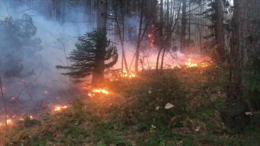 Erikli Yaylası'ndaki ormanlık alanda henüz bilinmeyen bir nedenle yangın çıktı.