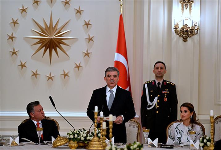 Cumhurbaşkanı Gül, yemekte yaptığı konuşmada, ''değerli kardeşim'' diye hitap ettiği Ürdün Kralı 2. Abdullah ve eşi Kraliçe Rania'yı Türkiye'de ağırlamaktan duyduğu memnuniyeti dile getirdi.