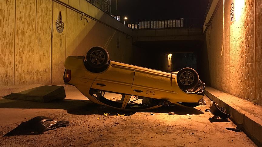 Alınan bilgiye göre, Altunizade Mahir İz Caddesi'nden Kısıklı yönüne seyreden Erol Kesin yönetimindeki 34 TFS 71 plakalı taksi, sürücüsünün direksiyon hakimiyetini yitirmesi sonucu beton ve demir bariyerlere çarparak 4 metre aşağıdaki alt geçide düştü.