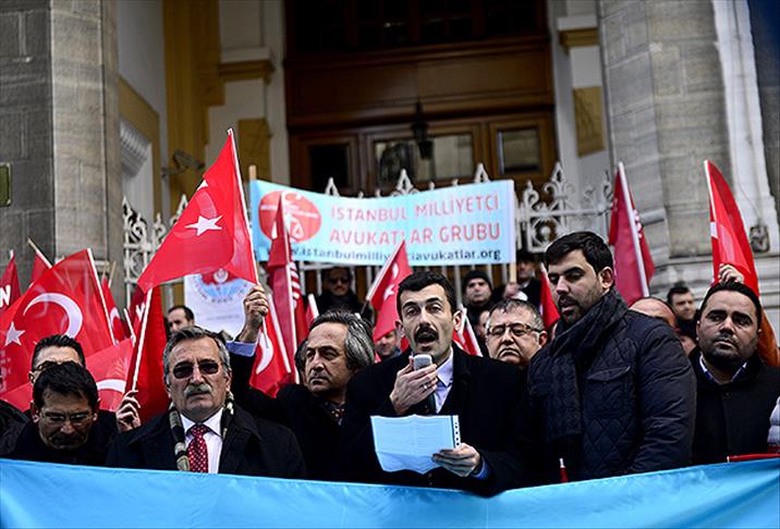 Ellerindeki Doğu Türkistan ve Türk bayraklarıyla Sirkeci Büyük Postanesi önünde toplanan 2023 Lider Ülke Türkiye Platformu öncülüğündeki grup, bir süre "Uygur Türkü sahipsiz bırakılamaz" sloganları attı.