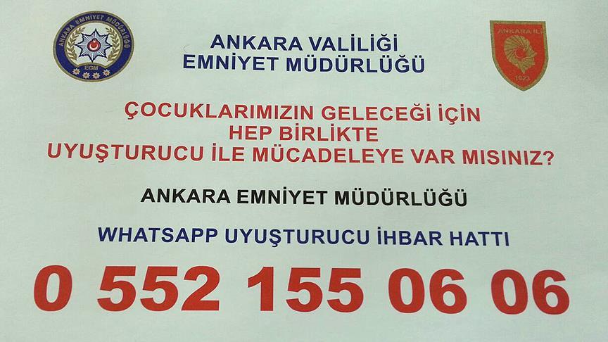 AA muhabirinin Ankara Emniyet Müdürlüğü yetkililerinden aldığı bilgiye göre, uyuşturucu ile mücadele kapsamında Ankara Valiliğinin desteğiyle hayata geçirilen uygulama sayesinde "WhatsApp ihbar hattı" 24 saat hizmet verecek.