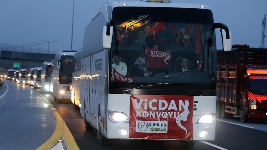 Bu kadınlar için 7 yıldır hiç kimsenin, hiçbir mekanizmanın hiçbir şey yapmadığını ifade eden Sönmez, "Dünya onlara ölmüş gibi davranıyor. Onlar yaşamıyorlarmış gibi davranıyor. Hatta mümkünse kimse hatırlamak, anmak bile istemiyor. Biz buna isyan ettik. Kadınlar olarak yollara düştük. Onlardan hiçbir şekilde vazgeçmeyeceğimizi, kadın, erkek hep beraber onları kurtarabileceğimizi iddia ediyoruz. Bütün dünyaya mektuplar yazdık. Putin'e, Kraliçe Elizabet'e, ABD Başkanı'na mektup yazdık. Tüm devlet liderlerine mektup yazdık. Hepsine bu zulümle anılan zalim devlet liderleri değil, bu kadınları kurtaran insanlar olarak anılmalarını tavsiye ettik. Herkesin elinde ne imkanı varsa yapmasını tavsiye ettik. BM, İslam İşbirliği Teşkilatı, kocaman kocaman mekanizmalar var ama biz çok büyük bir insanlık ayıbı, suçuyla karşı karşıyayız. Yarın da sesleneceğiz. Lütfen derhal, şartsız bir şekilde, içerde tutulan, kötülüğe maruz kalan küçük kız çocuklarından, 80 yaşındaki yaşlı kadınlara kadar tüm kızkardeşlerimizin serbest bırakılmasını ve bunu gözlerimizle görmek, onlara sarılmak istiyoruz. Bunun bütün insanlığın boynuna borç olduğunu düşünüyoruz. Sadece Müslümanlar değil, sadece İslam dünyası değil, bütün insanlık, vicdanı olan herkes bundan sorumlu. O yüzden bu konvoyun adı vicdan konvoyu." dedi.