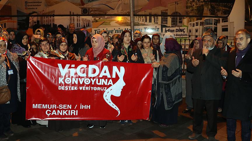 Suriye'de, Esed rejimince hukuka aykırı bir şekilde hapishanelerde tutularak işkenceye uğrayan kadınların sesini duyurmak amacıyla düzenlenen "Vicdan Konvoyu"na destek vermek isteyen bir grup gönüllü kadın, Çankırı'dan Hatay'a uğurlandı.
