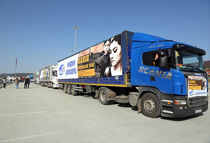 Konuşmaların ardından yardım malzemesi yüklü 11 tır, dualar eşliğinde Kilis'e doğru yola çıktı.