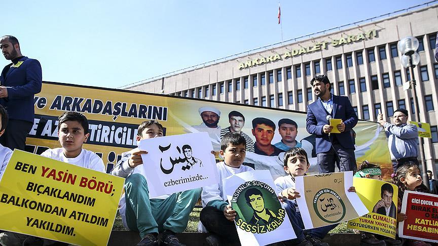 Gruptakiler, "Yasin ve arkadaşları için adalet", "Yasin Börü ve arkadaşlarını katledenler ile azmettiricileri hesap vermelidir" yazılı pankartlar, "Azmettiriciler yargılansın", "Sırtını PKK'ya değil, Allah'a dayadığı için öldürüldü", "Biz senin adını kitaptan biliriz Yasin", "Çocuklar doğur ey ana, adı Yasin olsun" yazılı dövizler ile maktullerin fotoğraflarını taşıdı.
