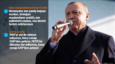 "Dün bir kendini bilmez, genel başkan olduğunu iddia eden birisi diyor ki 'ordu ve polis yenilecektir. Sarayın askerleri yenilecektir' diyor. Sarayın şu andaki cumhurbaşkanımız bir fanidir, gelip geçicidir ama bu milletin ordusu, bu milletin evlatlarından oluşan polisi binlerce yıldan beri vardı, binlerce yıldan beri var olmaya devam edecek. Onlara haddini bildirmeye devam edecek inşallah."