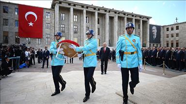 25. Dönem 2. Yasama Yılı dolayısıyla Meclisteki Atatürk Anıtı'nda tören düzenlendi.