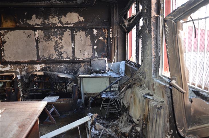 Göstericiler, Gazi Orta Okulunun kazan dairesinde bulunan kalorifer tesisatı ve jeneratörü de ateşe verdi. Okullardaki yangın, itfaiye ekiplerinin uzun süren çalışması sonrası söndürüldü.