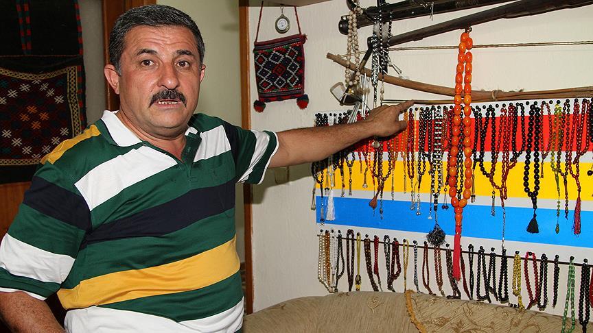 Takoz, AA muhabirine yaptığı açıklamada, tespih toplamaya 30 yıl önce hobi olarak başladığını, değerli değersiz, aralarında değişik taşların da olduğu bine yakın tespih biriktirdiğini söyledi.
