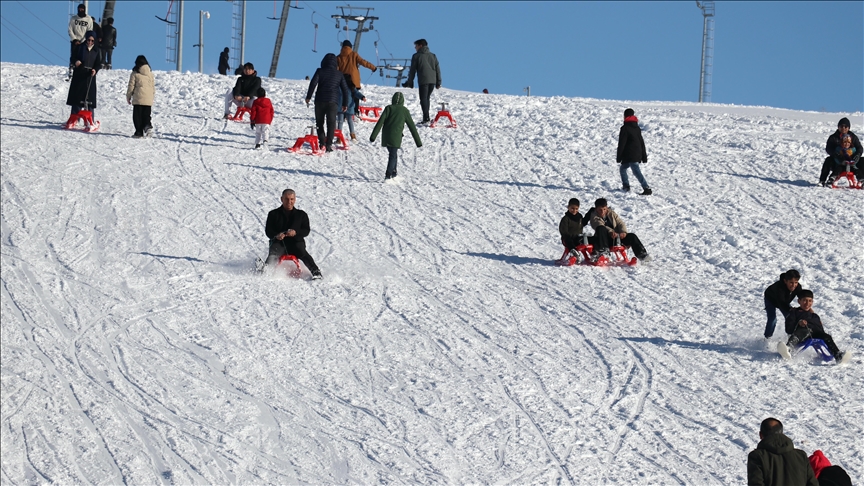 Anlık gelişmeler için AA Canlı Kızaklarla kaymanın tadını çıkaran çocuklar, eğlenceli zaman geçirdi.