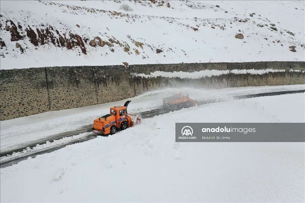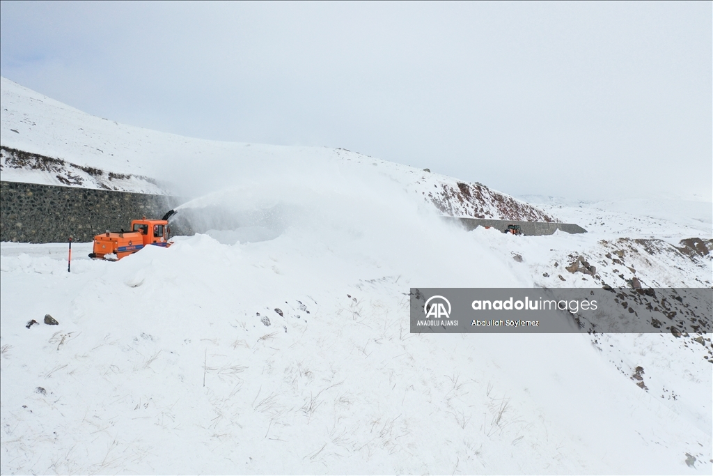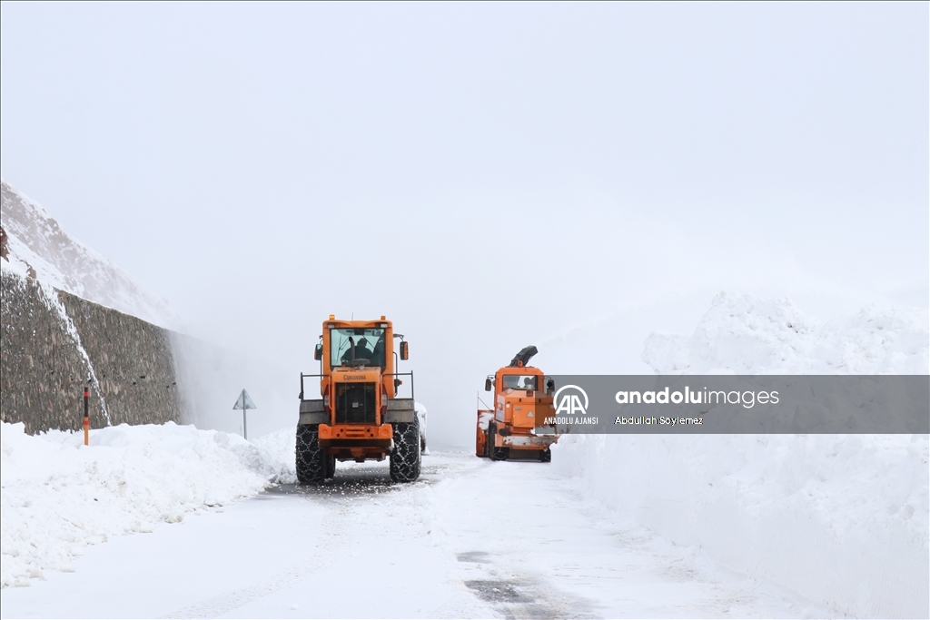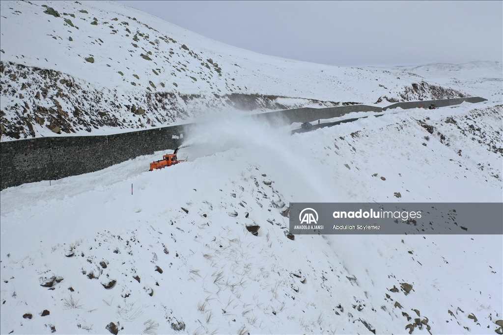 Rotatif operatörü Muhammet Sena Aslan, AA muhabirine, çalışma yaptıkları yolun yüksek dağların bulunduğu bölgeden geçtiğini, kar ve tipinin bölgede daha fazla olduğunu söyledi.