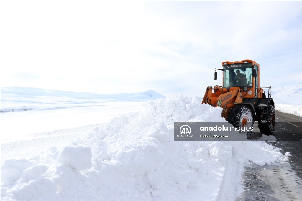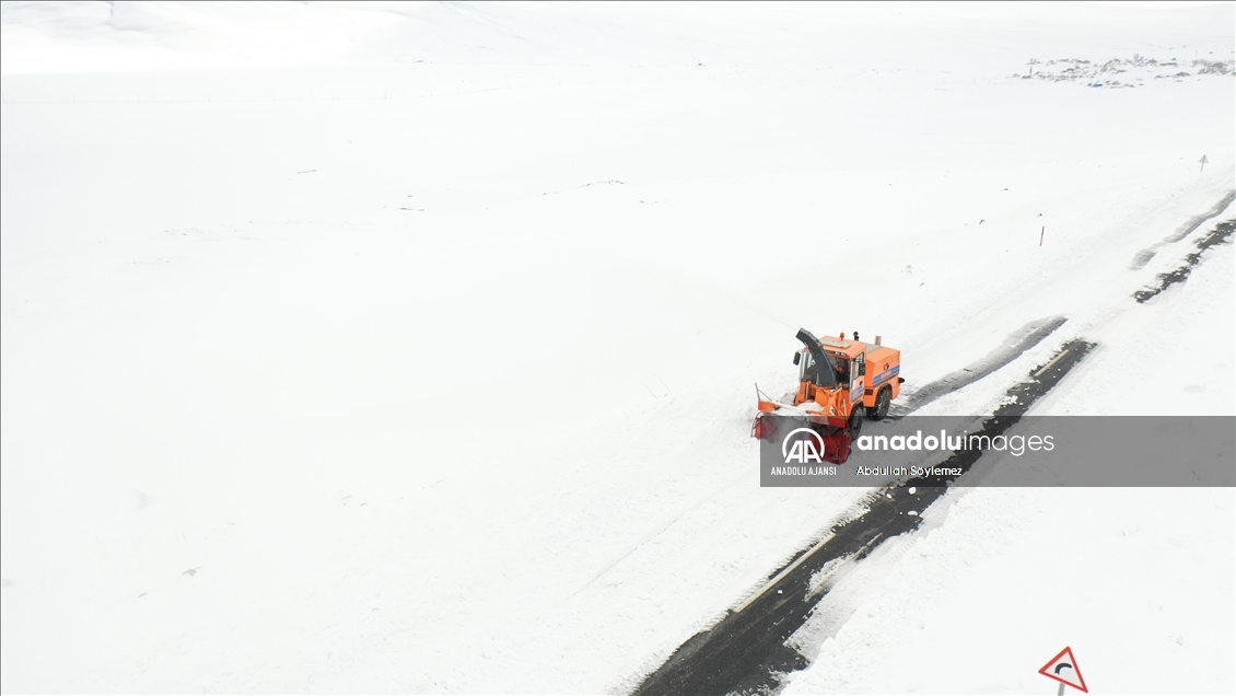 Ekipler, kentin en zorlu yollarından Ağrı ile Kars'ın Kağızman ilçesini birbirine bağlayan 2 bin 270 metre yüksekteki Yukarıkent Geçidi başta olmak üzere kar kalınlığının yer yer 2 metre olduğu yolları açık tutmak için çaba harcıyor.