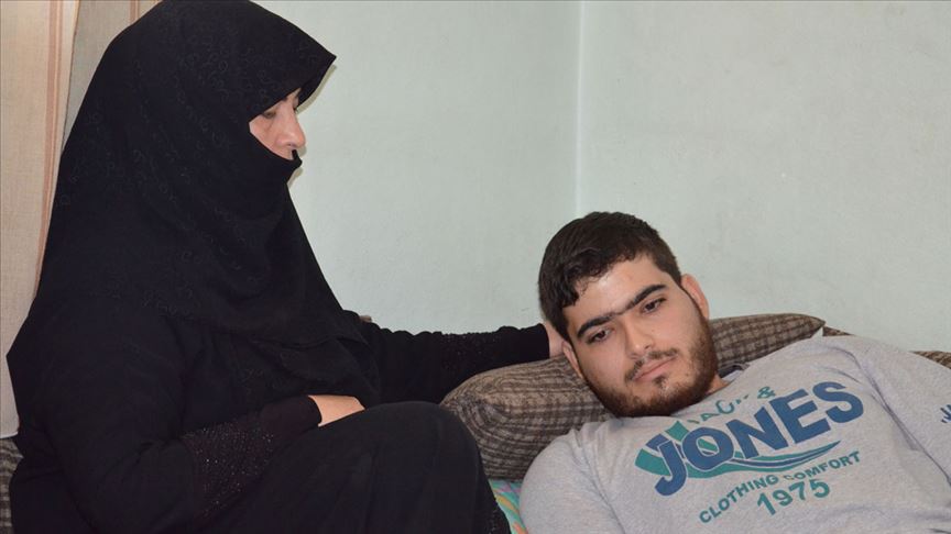 Doğuştan belden aşağısı felçli 27 yaşındaki Suriyeli Muhammed Hüseyin Herden, hareket edemediği ve sürekli oturduğu için kalçasında oluşan yaralar nedeniyle acı çekiyor.