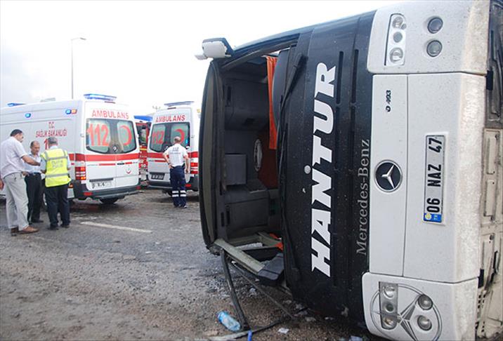 Ayaş ilçesinde yolcu otobüsünün devrilmesi sonucu ilk belirlemelere göre 5'i ağır 42 kişi yaralandı.