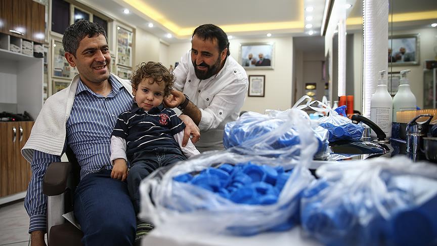 Engelliler Haftası dolayısıyla "mavi kapak" kampanyası düzenleyen Ankaralı berber Ercan Buyruk, 100 adet mavi kapak getireni ücretsiz tıraş ediyor.
